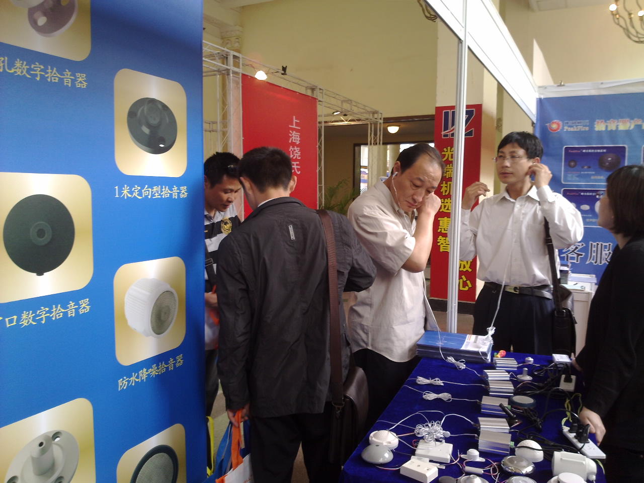 本屆上海安防展展覽面積達(dá)20000平方米,約800多個(gè)展位,300余家企業(yè)參加展覽,展會(huì)期間廣州峰火展示了PeakFire最新系列拾音器(監(jiān)聽頭)。現(xiàn)場(chǎng)工作人員熱情的為參觀者介紹峰火監(jiān)聽頭的最新功能。參數(shù)與運(yùn)用方法并得到了熱烈的回應(yīng)。