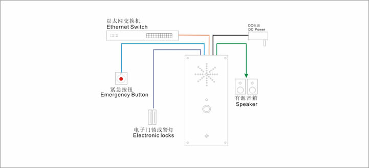 常規(guī)對講功能:包括一鍵緊急求助、一鍵快速廣播、分區(qū)廣播、雙向免提通話、遠(yuǎn)程維護(hù)、并提供與門禁、報警、錄音、監(jiān)控等系統(tǒng)的接口。